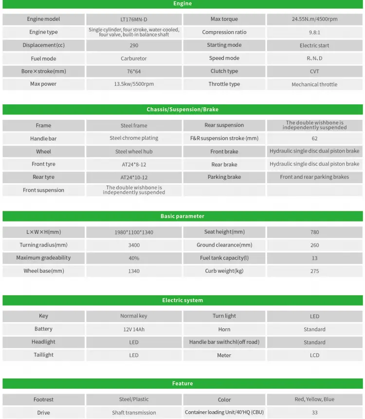 Single cylinder, 4 stroke, water cooled, 4 valve, built-in balance shaft